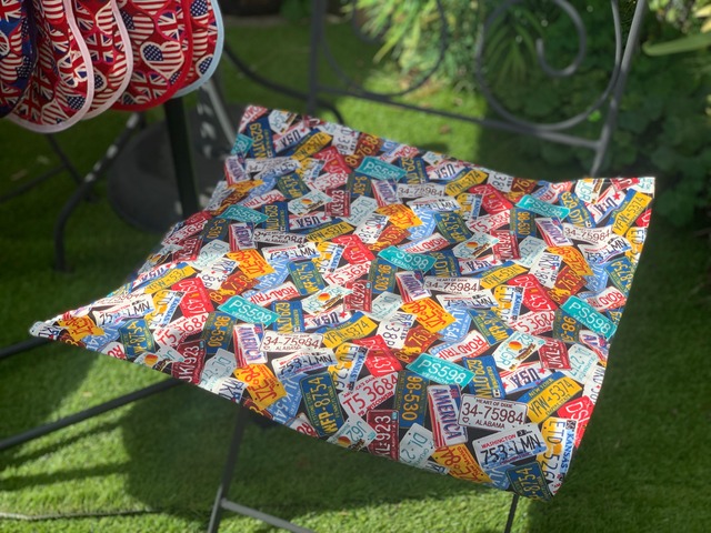 アメリカンナンバープレートが可愛い生地です。