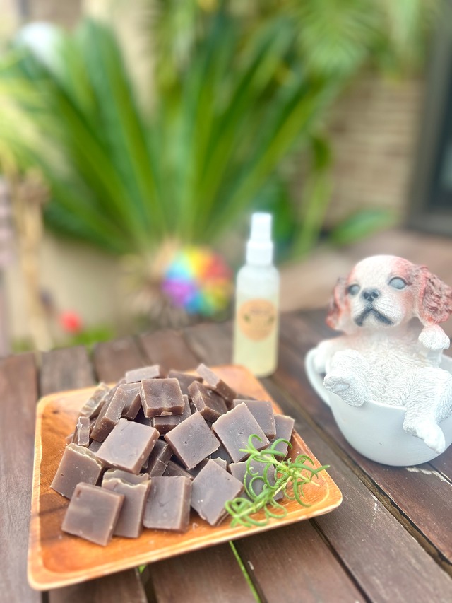 デリケートなわんちゃんの皮膚為に、厳選した食用レベルの材料を使用しておりますので、万が一舐めてしまっても安心です。